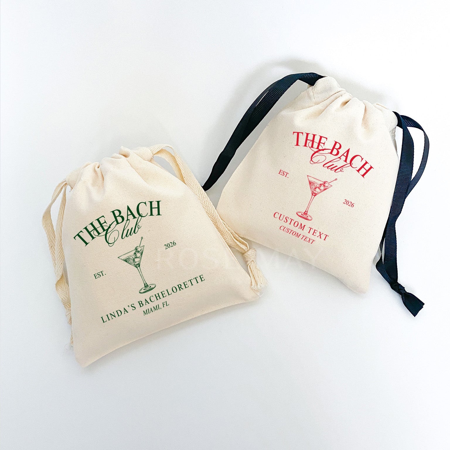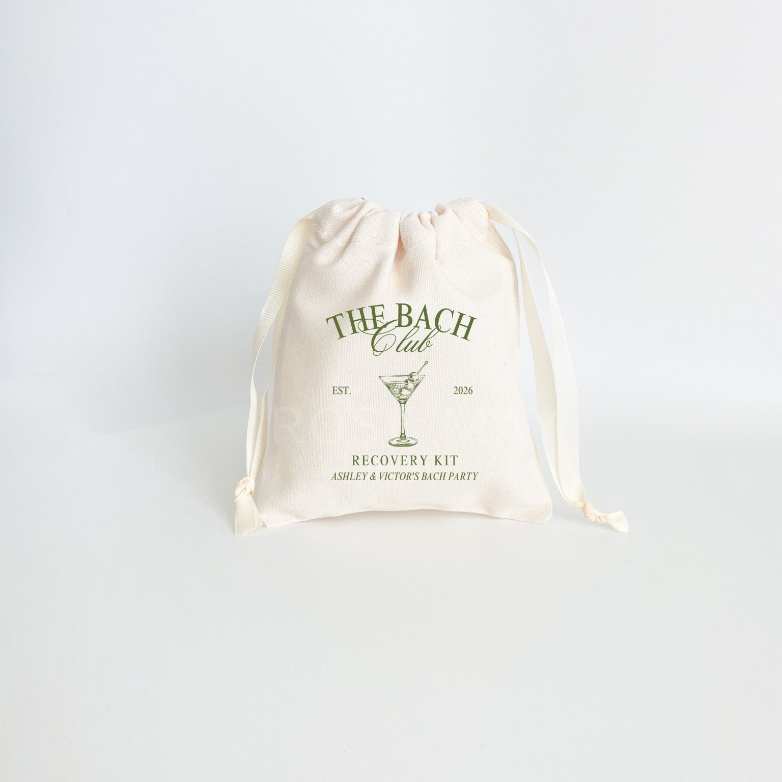 Get your party started with these recovery kits! Made with durable cotton canvas and your choice of natural or black drawstring ribbon, these bags can be personalized for bachelorette parties or wedding favors. Let the good times roll (and the drinks too)!